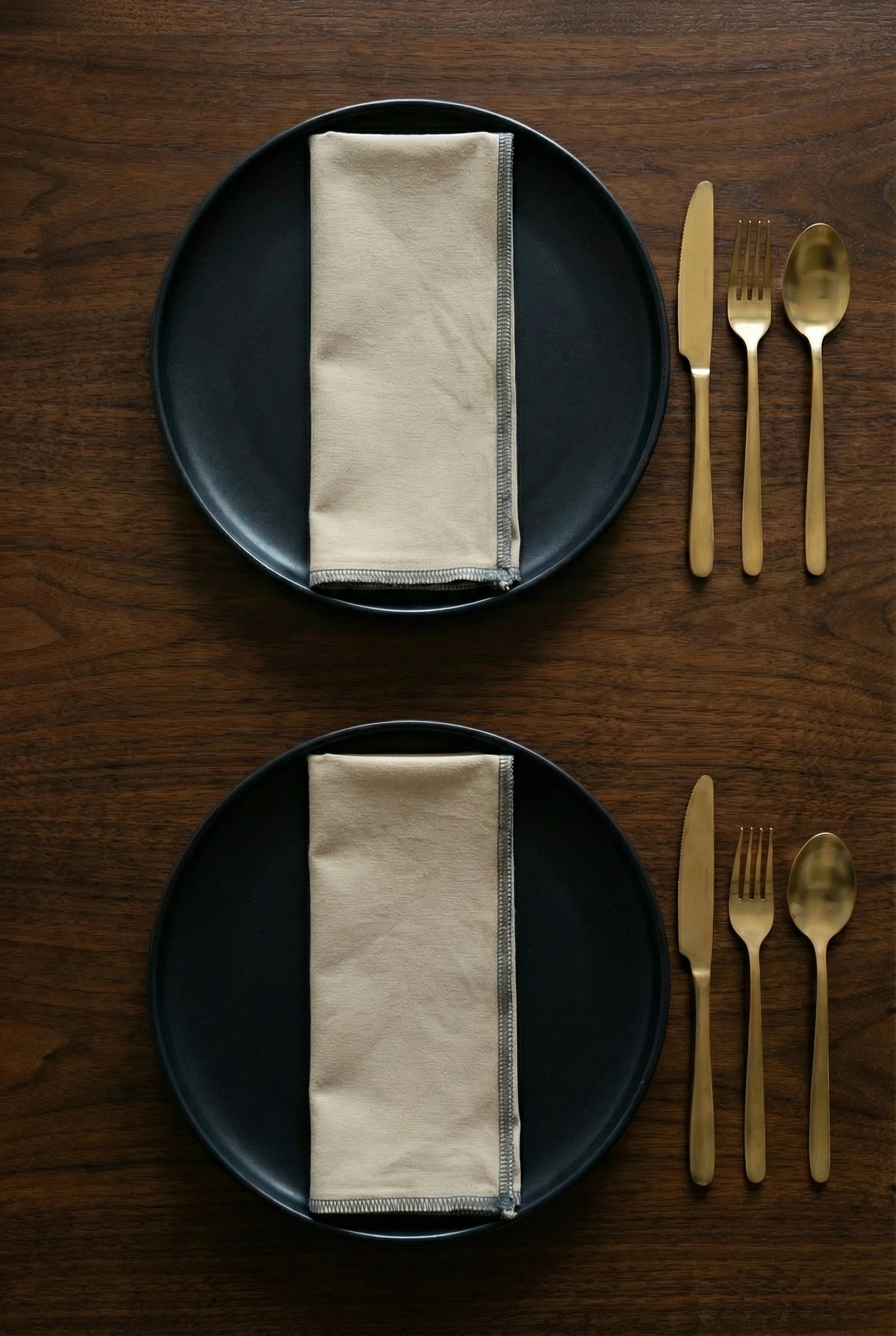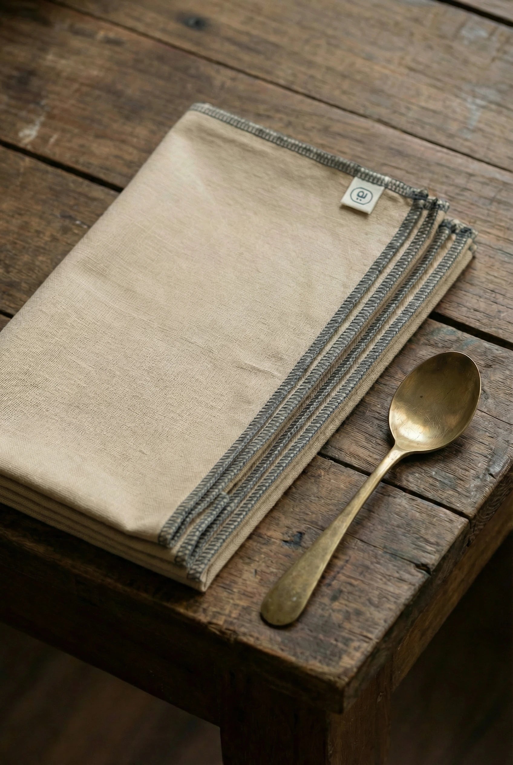 A set of four organic handloom cotton napkins, designed to bring quiet character to everyday dining. Each 18×18 inch napkin is finished with a clean single-fold hem and subtle contrast overlock detailing, adding a refined artisanal touch. Made in small batches, the set reflects a mindful approach to making, with minimal waste and careful attention to detail. From yarn to table, they carry the essence of slow living; thoughtful, enduring and kind to the planet.